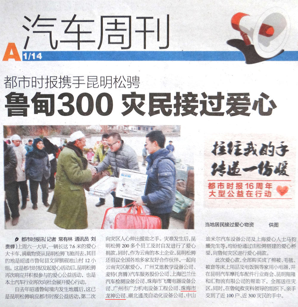 珠海龍神獻愛心活動受到報刊表彰,一起將正能量傳遞下去